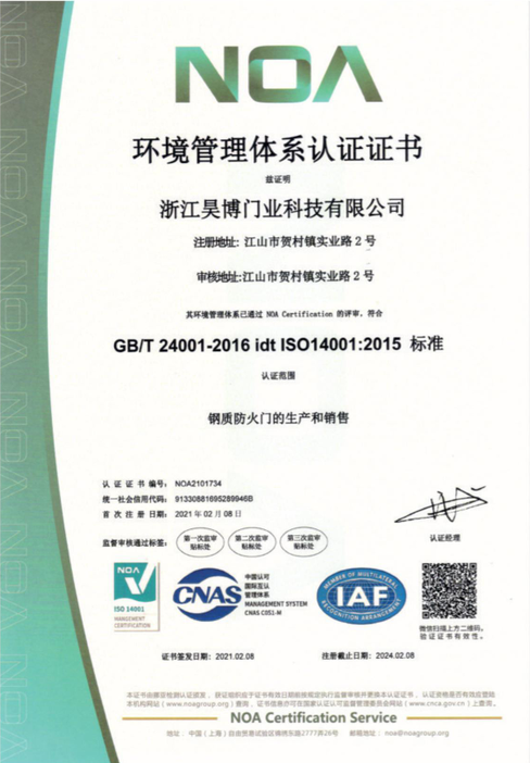 公司一直以來嚴格執行ISO9001質量體系和ISO14001環境管理體系標準,建立了完備的科研、開發、生產、銷售服務體系。公司是浙江省門業協會會員單位,江山門業協會理事單位,中國木材與木制品流通協會會員單位,江山市消防協會副會長單位。